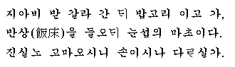 * Áö¾Æºñ ¡æ ³²Æí. Áö¾î¹ÌÀÇ ¹Ý´ë * ¹ä°í¸® ¡æ ¹äÀ» ´ã´Â °í¸®Â¦. '°í¸®'´Â °í¸®¹öµéÀ̳ª ´ë¿À¸®·Î ¿«¾î¼ »óÀÚ¿Í °°ÀÌ ¸¸µé¾î ¿ÊÀ̳ª ¹°°ÇÀ» ´ã¾Æ µÎ´ø °ÍÀÌ´Ù. * ´«¼·¿¡ ¸¶ÃÊÀÌ´Ù ¡æ ´«½ç ³ôÀÌ·Î ¹ä»óÀ» µé¾î ¿Ã·È³ªÀÌ´Ù. Áß±¹ Çѳª¶ó ¶§¿¡ ¾çÈ«ÀÇ ¾Æ³» ¸Í±¤ÀÌ ³²ÆíÀ» Áö±ØÈ÷ °ø°æÇÏ¿© ¼¶±â¾î, '°Å¾ÈÁ¦¹Ì(ËáäÐðºÚ¶)'ÇÏ¿´´Ù´Â °í»ç¸¦ ÀοëÇÑ °Í. |