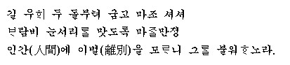 ¡ß Çü½Ä ¹× °¥·¡ : Æò½ÃÁ¶, À̺°°¡ ¡ß Ư¼º * µ¹ºÎó¿Í Àΰ£ÀÇ »óȲÀ» ´ëÁ¶ÇÏ¿© Á¦½ÃÇÔ. * ¹Ù¶÷, ºñ, ´«, ¼¸®(°íÅë°ú ½Ã·ÃÀÇ »ó¡)¸¦ Ȱ¿ëÇÏ¿© À̺°ÀÇ ½½Çİú °íÅëÀ» ±¸Ã¼ÈÇÔ. ¡ß ÁÖÁ¦ : À̺°ÀÇ ½½Çİú °íÅë ¡ß ¹®ÇлçÀû ÀÇÀÇ : ±Í¾ç±æ¿¡ ¿À¸£¸ç ÁöÀεé°ú À̺°À» ÇØ¾ß ÇÏ´Â »óȲ¿¡¼ ÈÀÚ°¡ ´À³¢´Â °íÅëÀ» ³ë·¡ÇÑ ÀÛǰÀ¸·Î, µ¹ºÎó¿Í Àΰ£»ç¸¦ ´ëÁ¶ÇÏ¿© À̺°ÀÇ ¾ÆÇÄÀ» Çü»óÈÇÔ. |